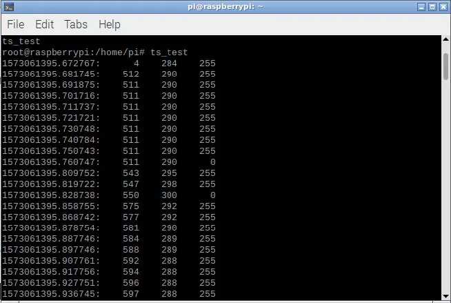 You can now test the calibration by running the ts_test command in the Terminal. This will run a short program to verify the calibration results by dragging a pointer or drawing an image. When you are finished testing, press quit, and the test information will be displayed in the Terminal. If you are unsatisfied with the accuracy of the test you can run through the ts_calibrate program again.