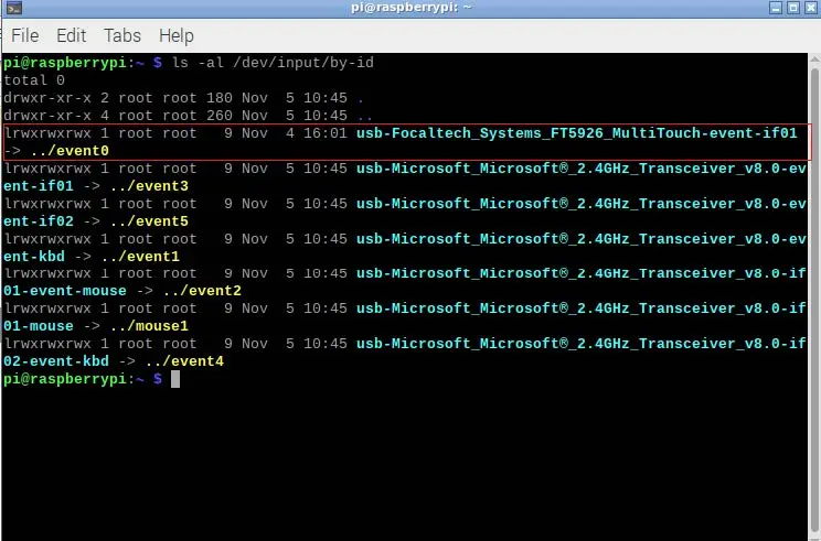 First, we will verify that the Raspberry Pi recognizes the display. To do this we will run a command that specifies where the input devices are connected. Open Terminal and execute the following command: