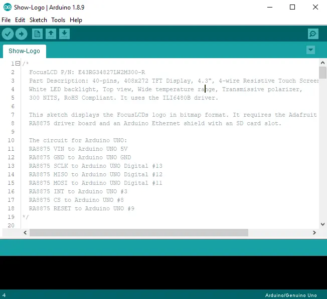 4.e Open this arduino program (AKA Sketch): Show-Logo.ino