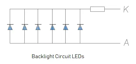 The forward voltage of the backlight LEDs has a typical value of 3.3V and the current can be adjusted to increase or decrease the backlight of the display.