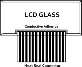 Heat seal connections for LCDs are a reliable connection type utilizing a flexible cable connector that is heated and sealed to a displays’ interface ports. This connection uses a special heat seal paper that is then adhered to the display using a conductive glue and sealed by applying heat.
