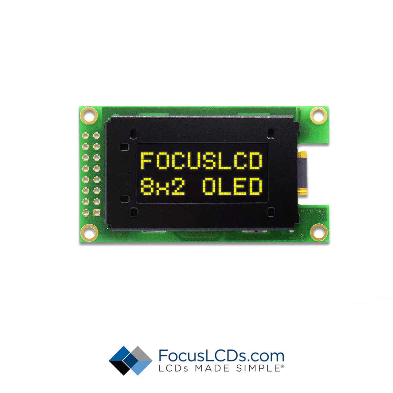 8x2 Character OLED: The 8x2 OLEDs are designed for applications requiring a compact display with a bit more information. These are suitable for small consumer electronics, handheld medical devices, or basic industrial monitors where two lines of text are needed without occupying much space..